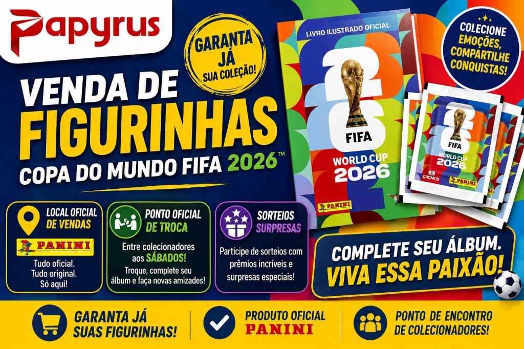 Reconhecida como ponto oficial de vendas da Panini no município, a Papyrus oferece produtos originais e toda a estrutura para quem quer entrar de vez no clima do maior evento do futebol mundial. No local, os clientes encontram álbuns ilustrados, pacotes de figurinhas e tudo o que é necessário para iniciar ou completar a coleção.