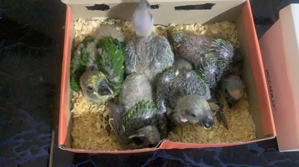 Quando foi realizada abordagem a um veículo Chevrolet/Onix, de cor branca, durante a revista veicular foram localizados 10 filhotes de papagaio.