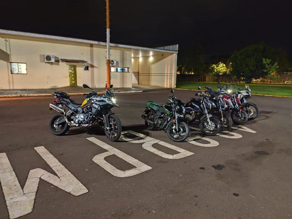 Foram adotadas as medidas previstas na legislação de trânsito, com o recolhimento das motocicletas para posterior regularização. As ações tiveram como objetivo coibir práticas que colocam em risco condutores e demais usuários das vias públicas.