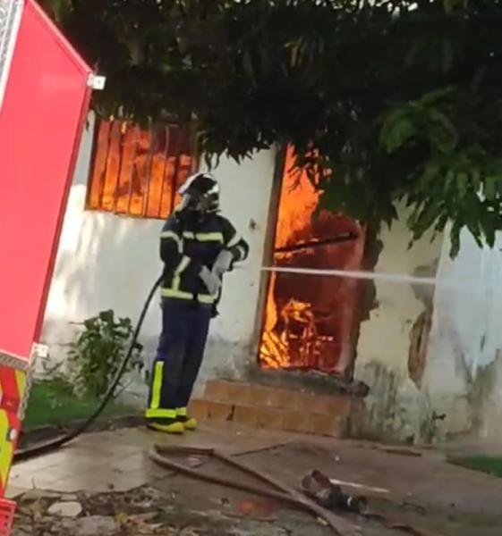 O morador da residência não estava no local no momento do incêndio.