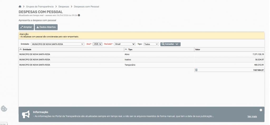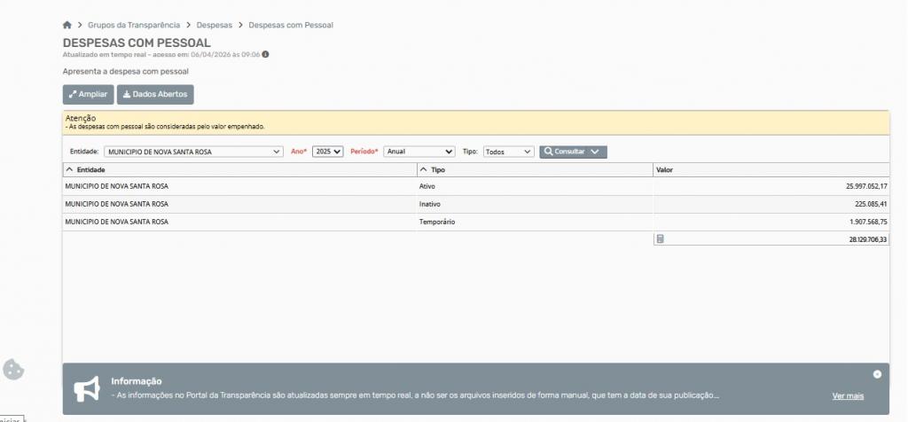 Já em 2026, considerando os dados parciais até o início de abril, a folha já soma R$ 7.827.984,07. Mantido esse ritmo, a projeção anual indica que o município pode fechar o ano com gastos entre R$ 30 milhões e R$ 32 milhões com pessoal.