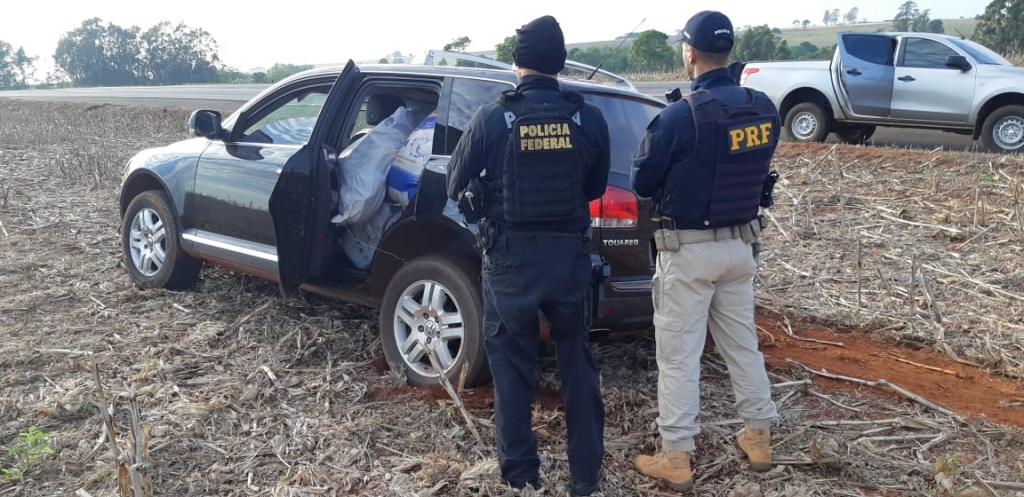 A PRF, em conjunto com a PF e EB, deram ordem de parada a um condutor de uma VW Touareg, na BR-272, por volta das 6 horas. O motorista, que seguia sentido Umuarama (PR), desobedeceu e fugiu, fazendo um retorno sobre a pista e seguindo sentido contrário, para Guaíra, quando uma viatura o certou, obrigando a fazer novo retorno, fugindo sentido Umuarama novamente.