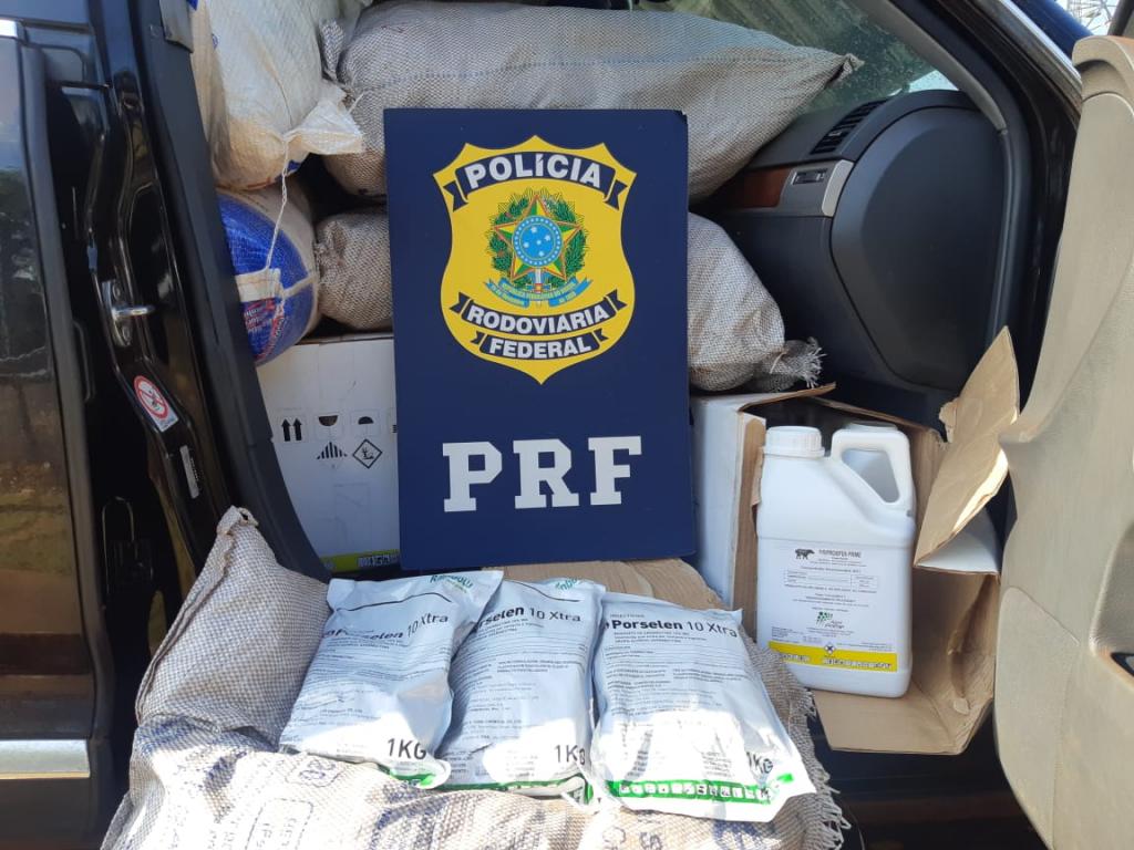 Na vistoria, os agentes encontraram cerca de meia tonelada de agrotóxico contrabandeado, avaliado em cerca de meio milhão de reais. Ainda encontraram um rádio comunicador no veículo, que é blindado.