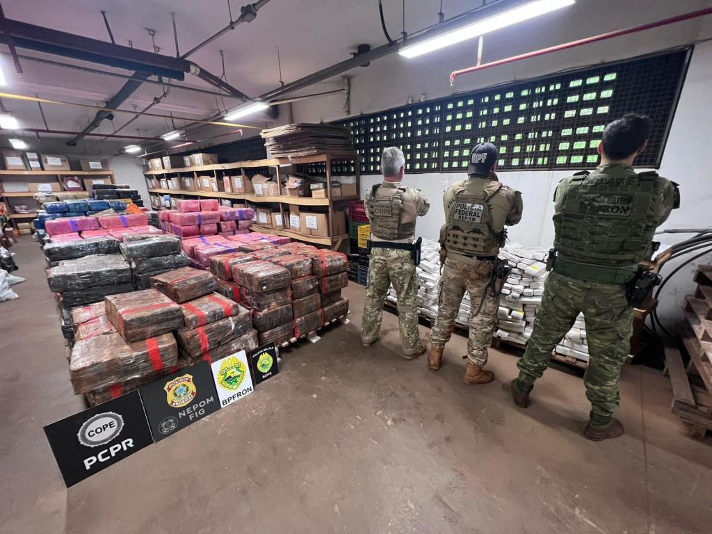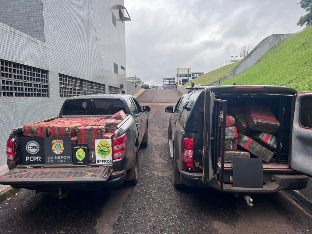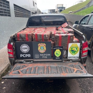 Policiais militares do BPFRON e BOPE da Polícia Militar do Paraná em ação integrada com policiais civis do COPE e policiais federais do NEPOM de Foz do Iguaçu realizavam patrulhamento em portos clandestinos no interior de Santa Helena quando localizaram em um porto fardos totalizando 1.005,8 kg de maconha.