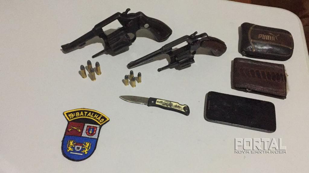 No terreno vizinho os policiais detiveram um indivíduo que tentava fugir. Ao ser perguntado disse que a arma que utilizava tinha caído ao pular o muro. Após buscas nas proximidades do muro os policiais encontraram um revólver calibre .32 com 4 munições. Da residência fora levado dois veículos, um Ford Fusion preto e uma Toyota Hilux branca, além de um celular iPhone 8.