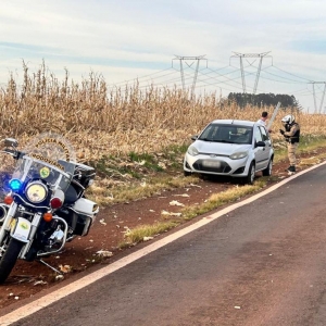 Em outra ação realizada na PR-488, em Diamante do Oeste, a equipe de motociclistas do BPRV abordou uma motocicleta Honda CG com escapamento adulterado. Durante a inspeção dos sinais identificadores do veículo, os policiais constataram adulteração, e o condutor foi preso em flagrante com base no artigo 311 do Código Penal.