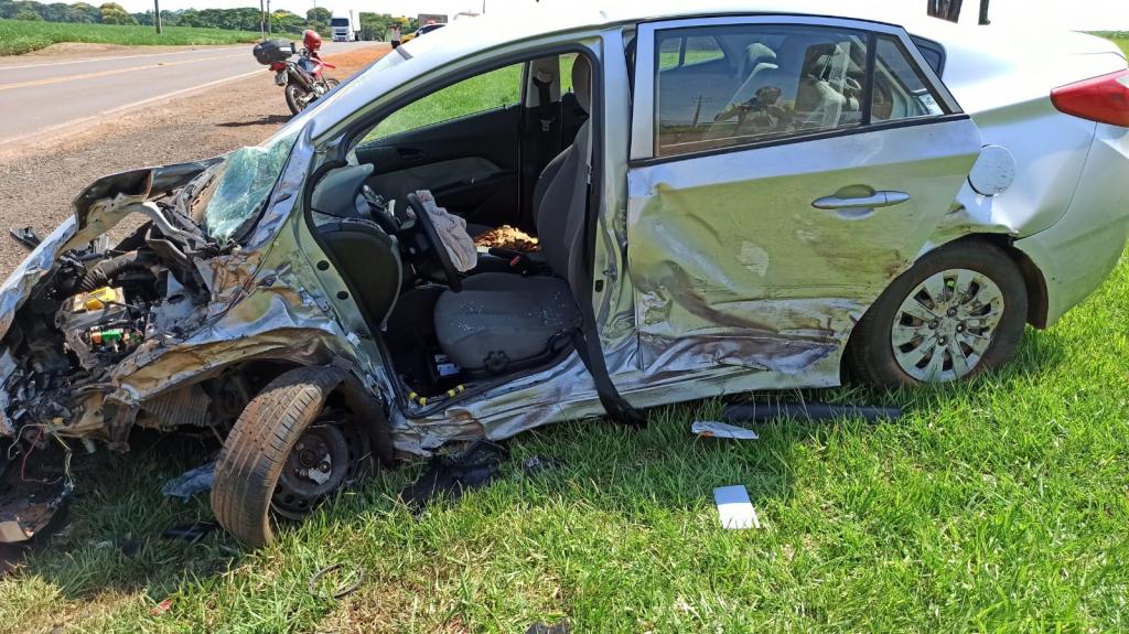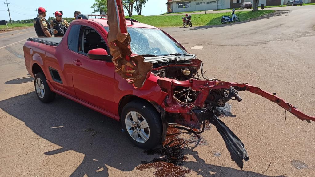 O veículo Chevrolet Montana e o Hyundai HB20, os dois com placas Mercosul se envolveram em uma forte colisão na manhã desta quinta-feira na rodovia estadual PR 182 saída para Palotina em frente ao Olinda Park Hotel em Toledo.