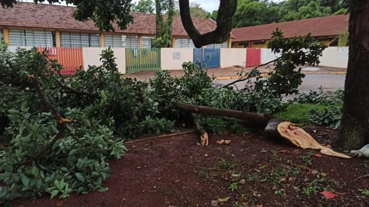 Um forte temporal no final da tarde desta segunda-feira (10) atingiu Toledo em cheio. Várias árvores foram derrubadas ou arrancadas em diversos pontos da cidade. Postes também foram atingidos. Isso deixou alguns bairros sem energia elétrica e prejudicou o trânsito.