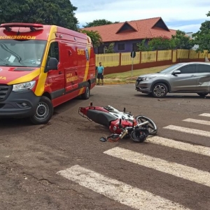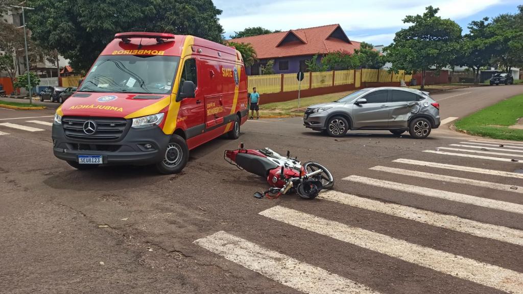 A colisão envolveu uma motocicleta Honda CBX 250 Twister, e um veículo Honda HR-V. De acordo com informações obtidas no local, a batida ocorreu quando a moto trafegava pela Rua Guarani e o automóvel seguia pela Rua Terra Roxa.