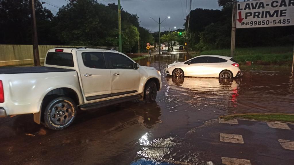 As fortes chuvas que caíram no final da tarde de terça-feira (16) provocaram alguns alagamentos em Toledo, sendo o mais expressivo na avenida Carlos Barbosa com a Rua Cerro Corá, na Vila industrial.