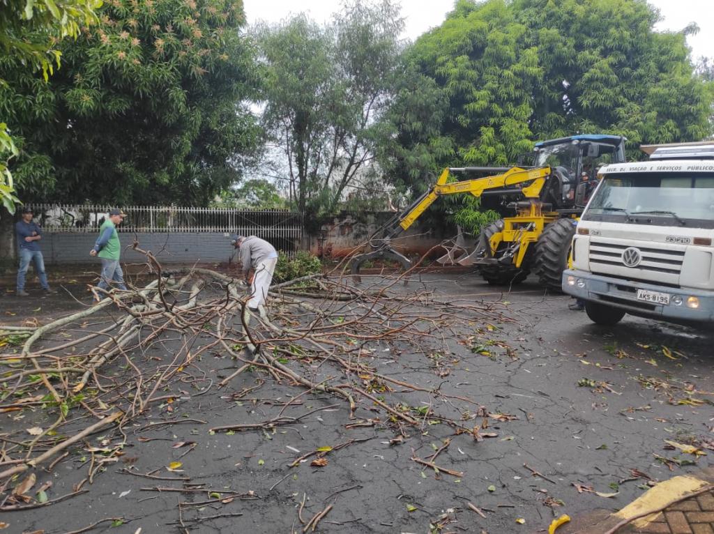 Equipes das secretarias de Agricultura, Pecuária e Desenvolvimento Sustentável e de Infraestrutura da prefeitura de Marechal Cândido Rondon estão mobilizadas atuando na retirada de árvores e galhos, das vias públicas.