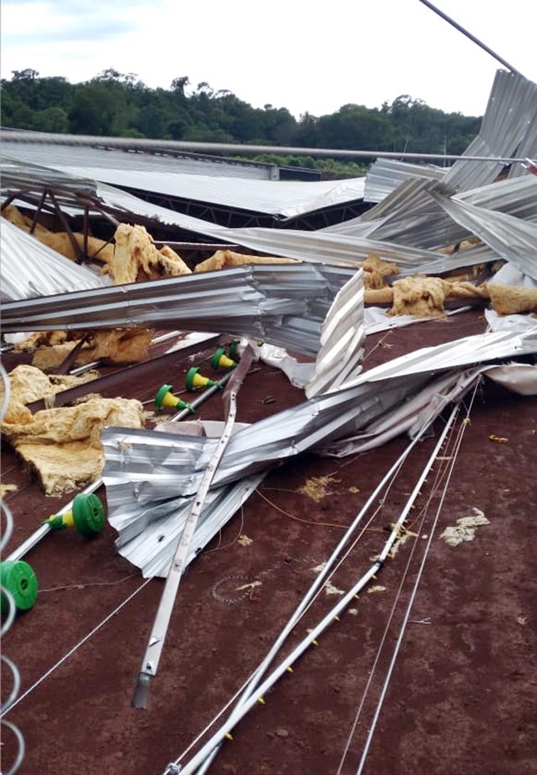 Moradores de Pato Bragado também registraram destelhamentos de casas e barracões, quedas de árvores e a queda de uma torre de internet.