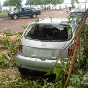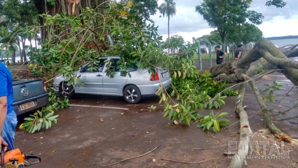 Um internauta mandou para a reportagem do Portal Nova Santa Rosa imagens de uma árvore que teve um de seus galhos quebrados com a força dos ventos que foram registrados na tarde deste domingo (06), na praia de Porto mendes, interior de Marechal Rondon, os veículos que estavam estacionados nas proximidades tiveram danos, não houve registro de pessoas feridas.