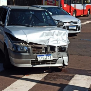 Um acidente entre dois carros foi registrado no início da tarde desta sexta-feira nas proximidades da prefeitura de Toledo.