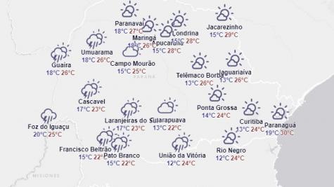 Em Cascavel a temperatura máxima prevista para hoje é 23º e a mínima 17º.