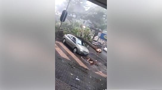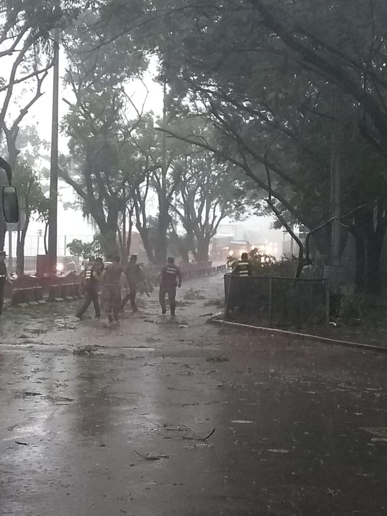 Nelas, é possível ver que uma árvore que fica no lado Paraguaio acabou caindo e deixou o sentido Ciudad del Este para Foz do Iguaçu bloqueado.