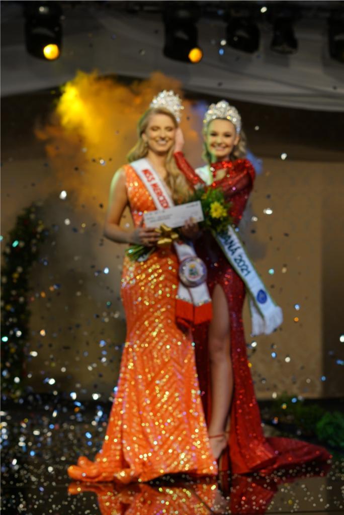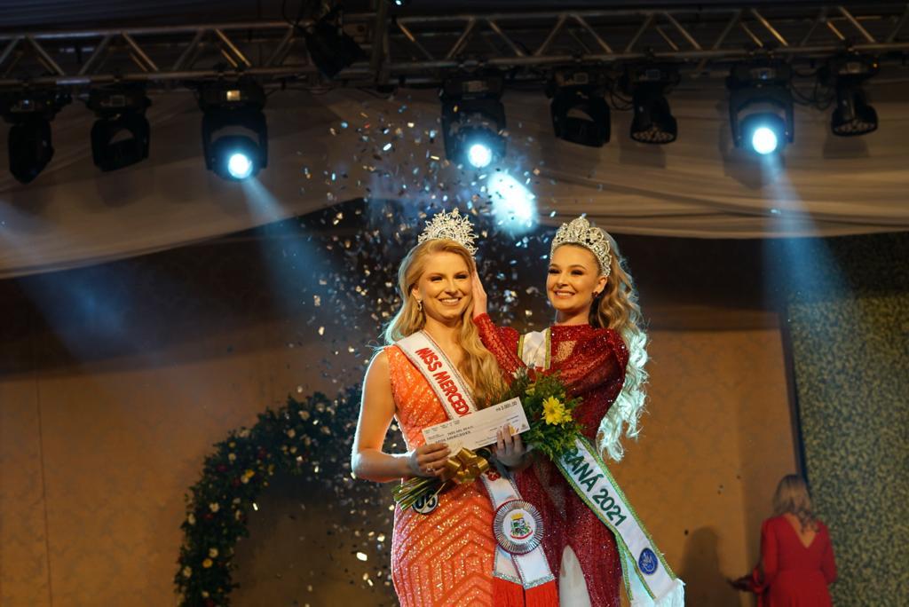 Gabriela Larissa Genz recebeu a coroa das mãos de Eduarda Van de Sand, Miss Mercedes 2018/2019 e Miss Paraná 2020/2021.