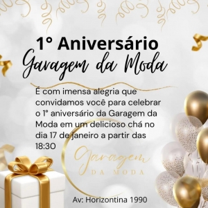 É com muita alegria que a equipe da Garagem da Moda convida a comunidade para celebrar este 1º aniversário.