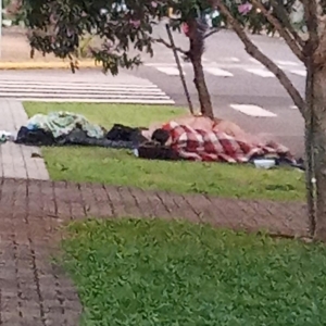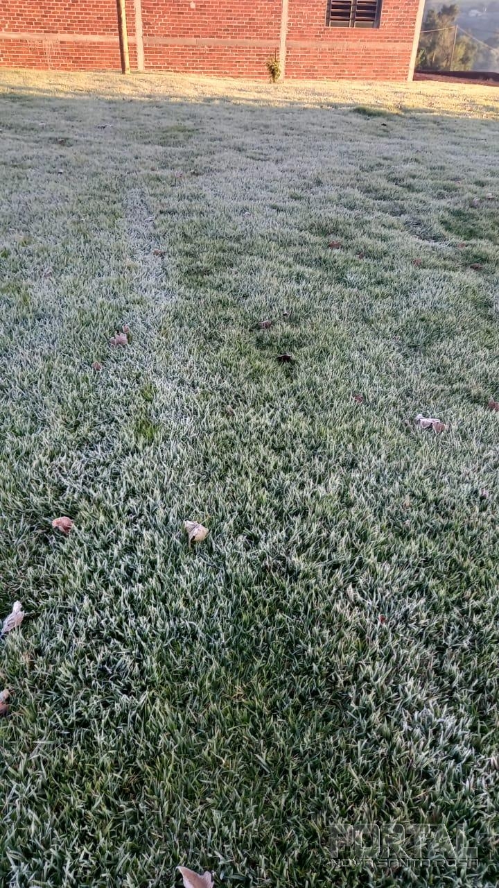 O Campo de futebol do São Roque amanheceu com uma camada de geada considerável, registrou outro internauta. Moradores de rua foram flagrados dormindo na calçada durante a madrugada.
