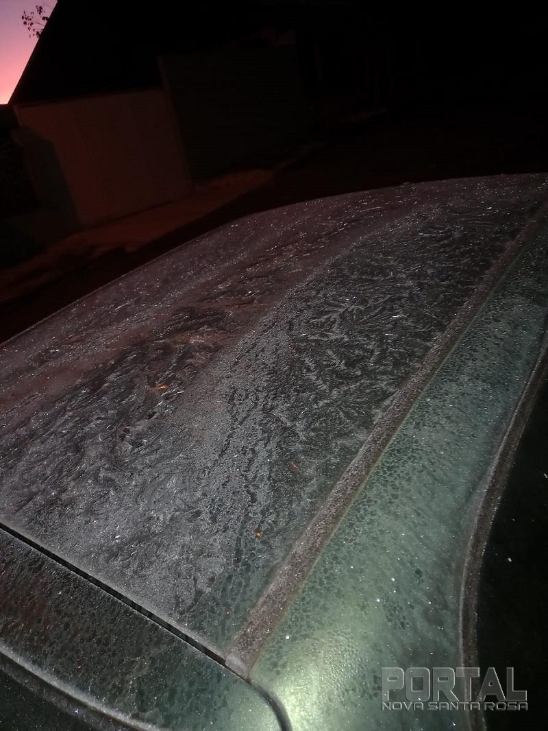 Internautas enviaram imagens na manhã desta sexta-feira com registros de geadas em várias regiões do município de Toledo.