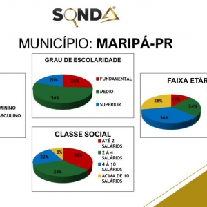 O Instituto Sonda - empresa de sondagem de gestores públicos e empresas – divulgou nesta sexta-feira (25) o resultado de uma pesquisa realizada em Maripá para identificar o grau de satisfação dos munícipes com a atual gestão municipal e os vereadores.
