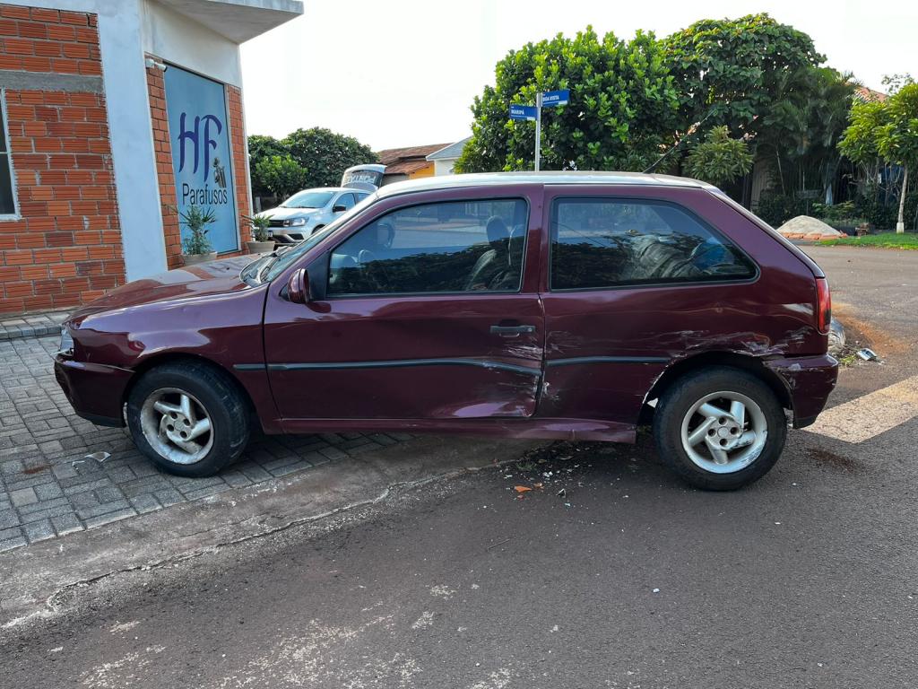 Após a batida, o Gol subiu na calçada e ainda atingiu levemente uma Fiat Strada estacionada.