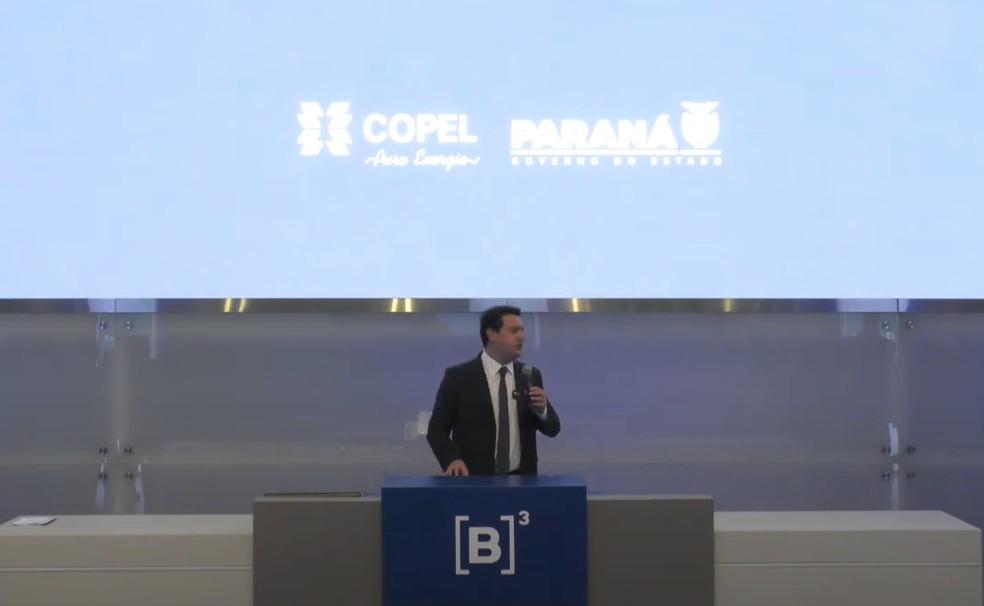 O Governador do Paraná, Ratinho Júnior (PSD), participou da cerimônia de toque de campainha que encerra a oferta de ações da Companhia Paranaense de Energia (Copel), em São Paulo, nesta segunda-feira (14).