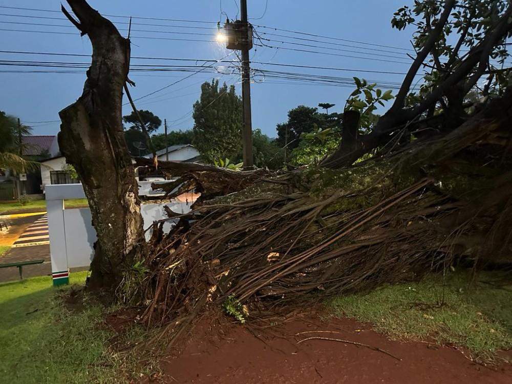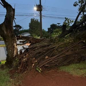 A chuva e o vento desta madrugada de terça-feira (24) foram os fatores responsáveis pela queda de uma árvore, que atingiu parte da estrutura do Hospital Municipal Doutor Cruzatti.