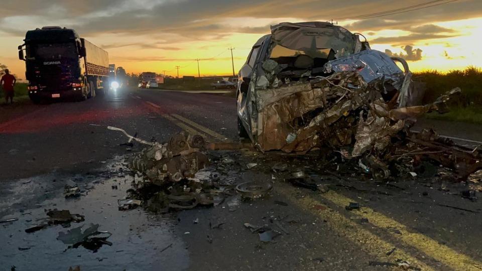 De acordo com as informações repassadas no local, um Volkswagen Voyage tentava realizar uma ultrapassagem quando bateu de frente com uma van que vinha no sentido contrário. Um caminhão baú e uma motocicleta Honda Biz, que também passavam pelo trecho, acabaram atingidos na sequência.