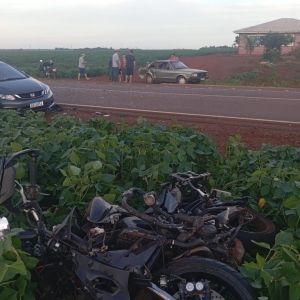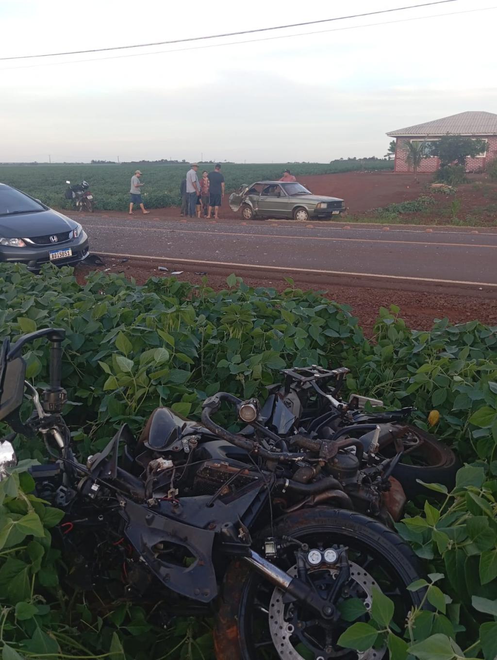 A colisão envolveu uma moto e um carro, as primeiras informações é de que o motociclista colidiu na traseira do Ford Corcel II, com a força do impacto a traseira do carro ficou destruída, a moto foi parar em uma lavoura de soja as margens da rodovia.