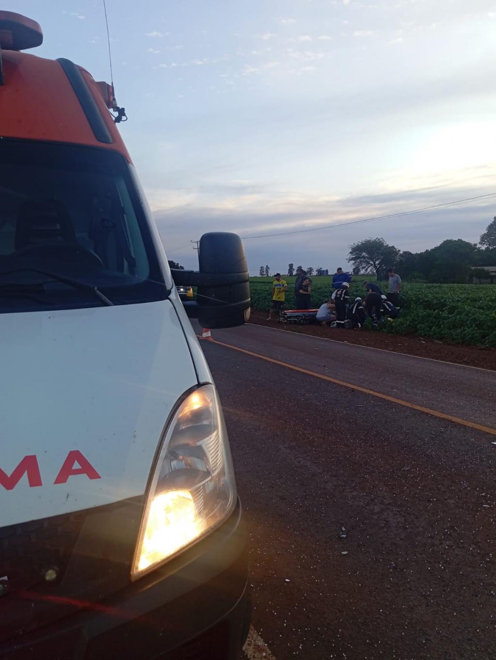Ambulâncias do Samu de Palotina foram deslocadas para socorrer o condutor da moto e o condutor do carro.
