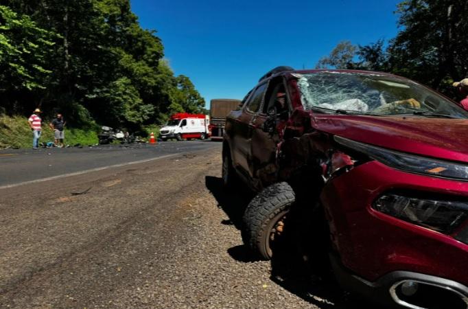 Um grave acidente de trânsito foi registrado por volta das 14h15 desta quarta-feira (13), na rodovia PR-182, na entrada para a linha Água Boa Vista, em Ampére. O acidente envolveu uma Fiat/Toro, de Ampére e uma motocicleta BMW, com placa de Osasco, São Paulo.