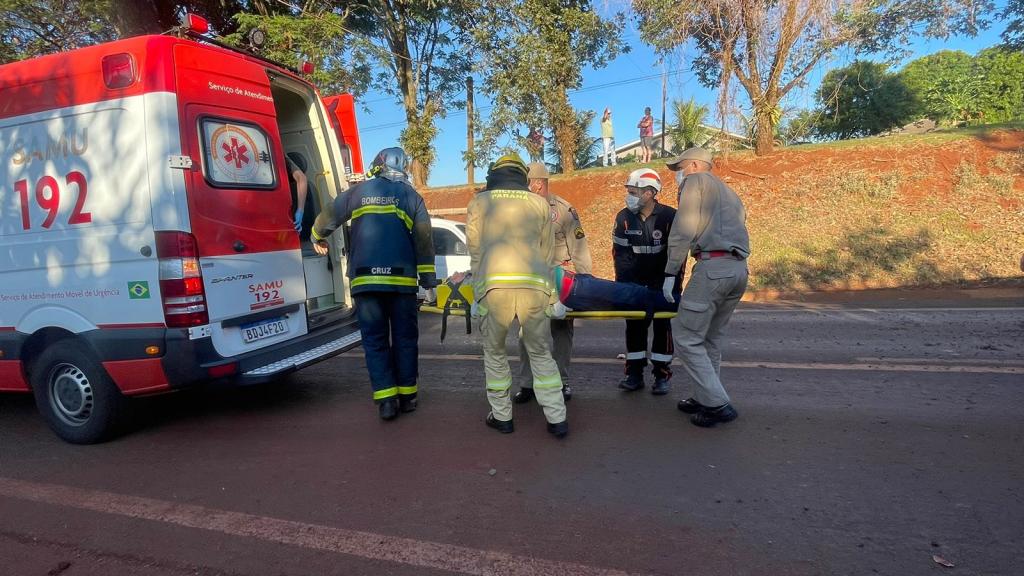 Socorristas do Samu e Corpo de Bombeiro Militar de Palotina foram acionados na manhã deste sábado (06), para atender um grave acidente de trânsito ocorrido na rodovia PR-182, no trecho entre o trevo da C.Vale e o posto da Polícia Rodoviária Estadual de Palotina.