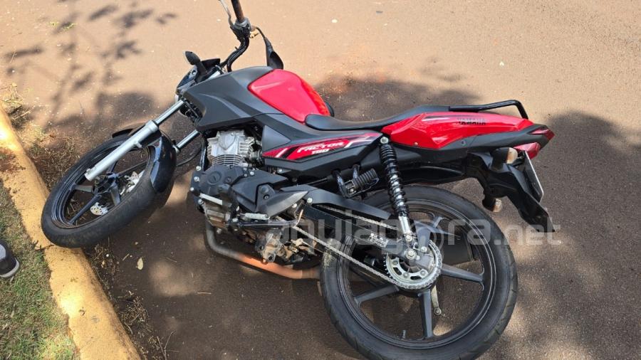 Com o choque, a Yamaha Factor 150 atravessou o canteiro central, parando na outra pista.