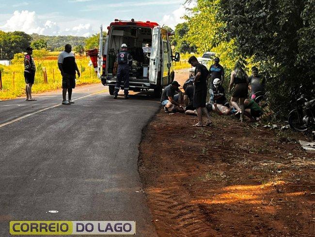 O impacto deixou o motociclista com um ferimento grave na perna, com significativo sangramento no local do acidente. O Serviço de Atendimento Móvel de Urgência (SAMU) foi acionado, realizou os primeiros socorros e conseguiu estabilizar o sangramento antes de encaminhá-lo ao Hospital Beneficente.