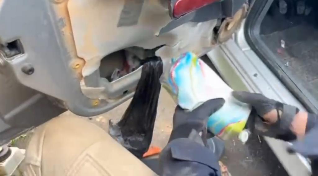 Durante a vistoria, foram encontrados sinais de manipulação na forração das portas dianteiras. Ao remover os forros, os agentes localizaram oito tabletes de crack, totalizando 8,5 quilos.