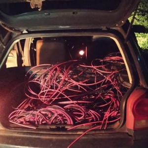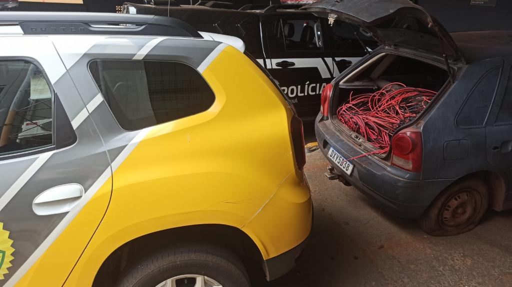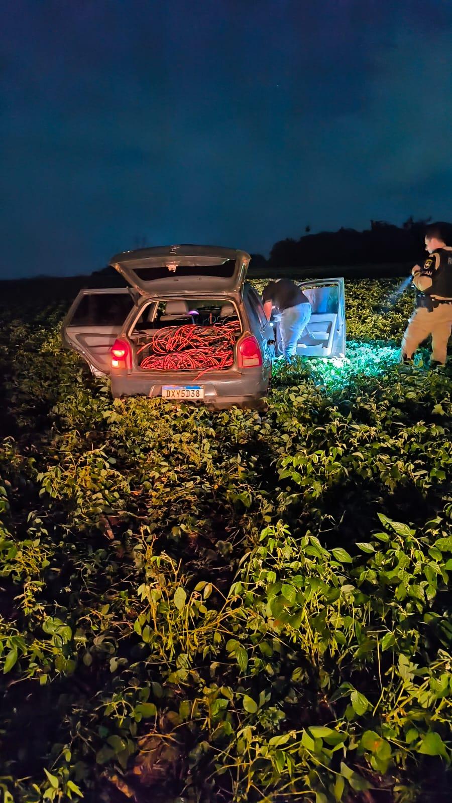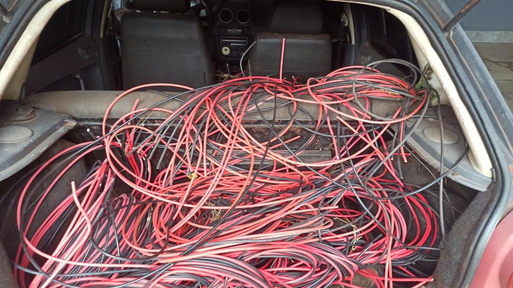 Durante a operação, dois homens, com idades entre 25 e 35 anos, foram presos em flagrante transportando uma grande quantidade de cabos de energia elétrica furtados de uma propriedade localizada na Linha São Salvador, zona rural do município.