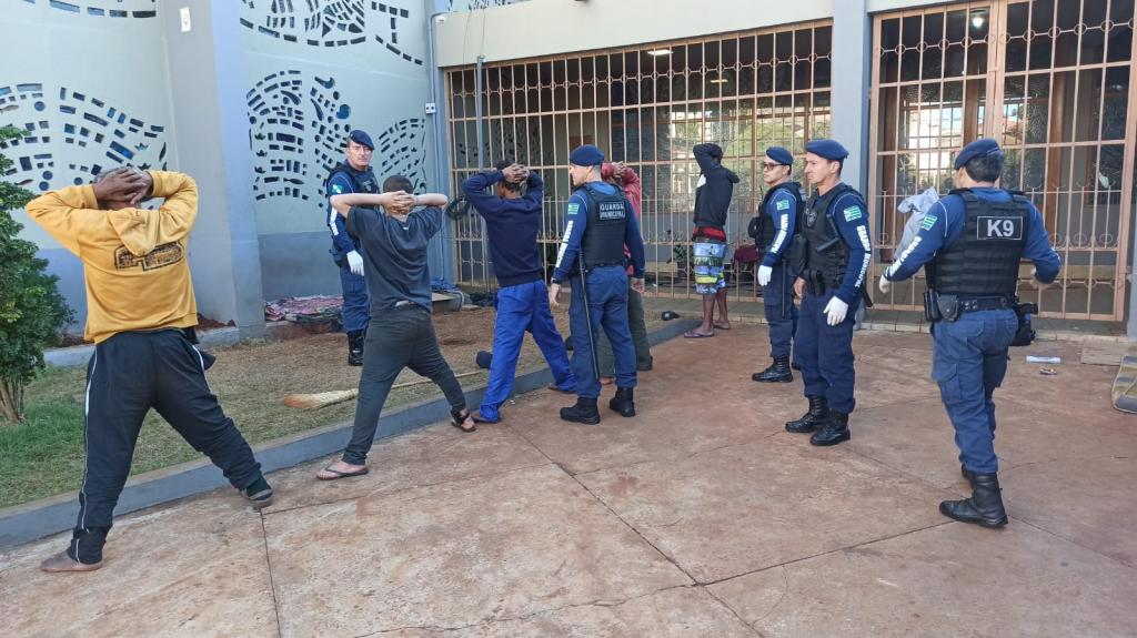Esse grupo de pessoas estava usando a Catedral Cristo Rei para passar a noite, foram feitas orientações para saírem do local mas não obedeceram. Então, hoje, três equipes da Guarda Municipal deslocaram para fazer as abordagens, inclusive, identificaram que um dos homens, natural de Palmas, usa tornozeleira eletrônica e responde por roubo a mão armada.