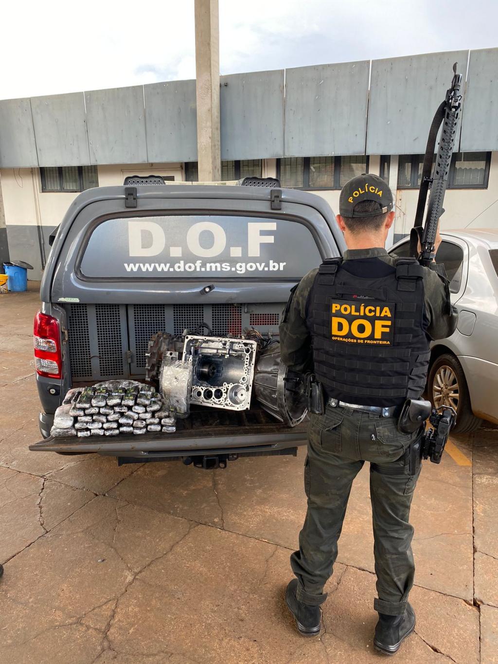 Durante a vistoria, os policiais perceberam algo diferente na composição de uma caixa de câmbio e, ao abri-la, constataram a droga em seu interior. O objeto seguia com uma nota fiscal em nome de uma empresa da Capital.