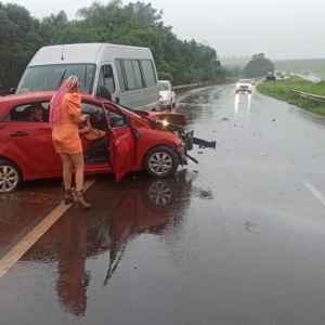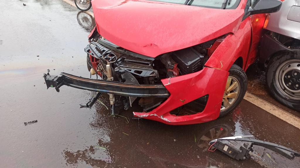 Um veículo Hyundai HB20 com placas de Santa Tereza do Oeste conduzido por uma mulher que tinha como passageiros duas crianças e uma idosa colidiu contra o anteparo na BR 163 na ponte sobre o Rio lopeí, divisa do município de Toledo e Cascavel por volta das 16h30 deste domingo. A pista estava milhada no momento da colisão.