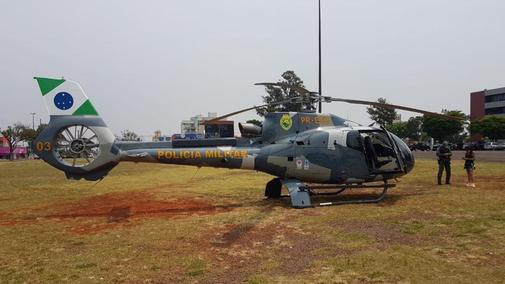 Quem passou em frente à Prefeitura Municipal de Cascavel nesta manhã notou a presença de um helicóptero da Polícia Militar.
