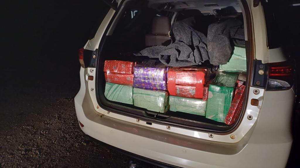 O veículo encontrava-se ligado com as luzes acesas e abandonado sem o condutor. Ao inspecionar o interior do veículo, foi encontrado no assoalho do banco traseiro e bagageiro grande quantidade de maconha.
