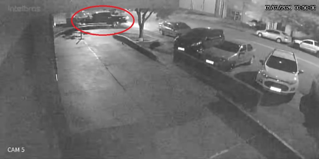 Imagens de câmeras de segurança da região indicam que o furto ocorreu por volta das 00h45. De acordo com informações repassadas pela 2ª Companhia da Polícia Militar, após a ação criminosa o veículo seguiu em direção à fronteira com o Paraguai, conforme verificação realizada em câmeras de monitoramento.