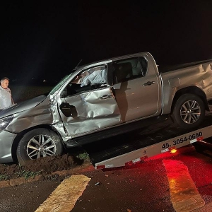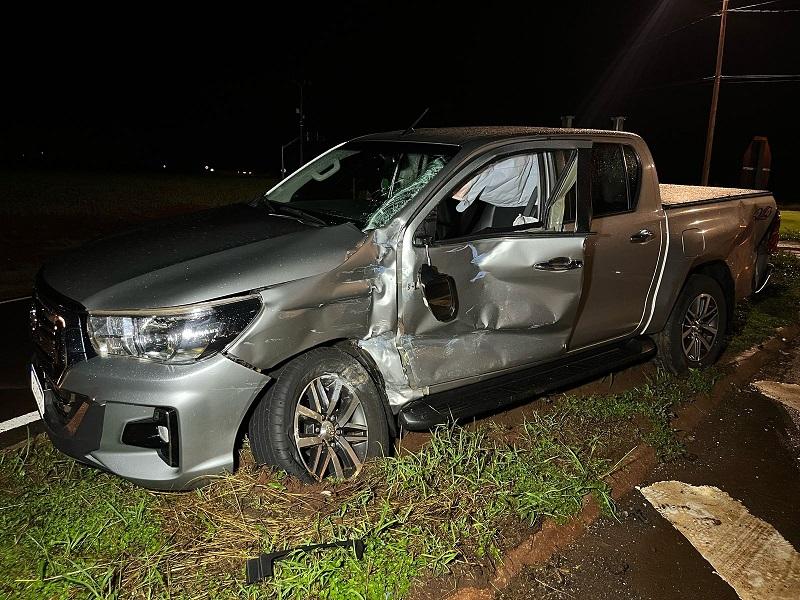A caminhonete foi atingida na lateral do motorista sendo arrastada até o canteiro do trevo. A dinâmica do acidente não foi revelada.