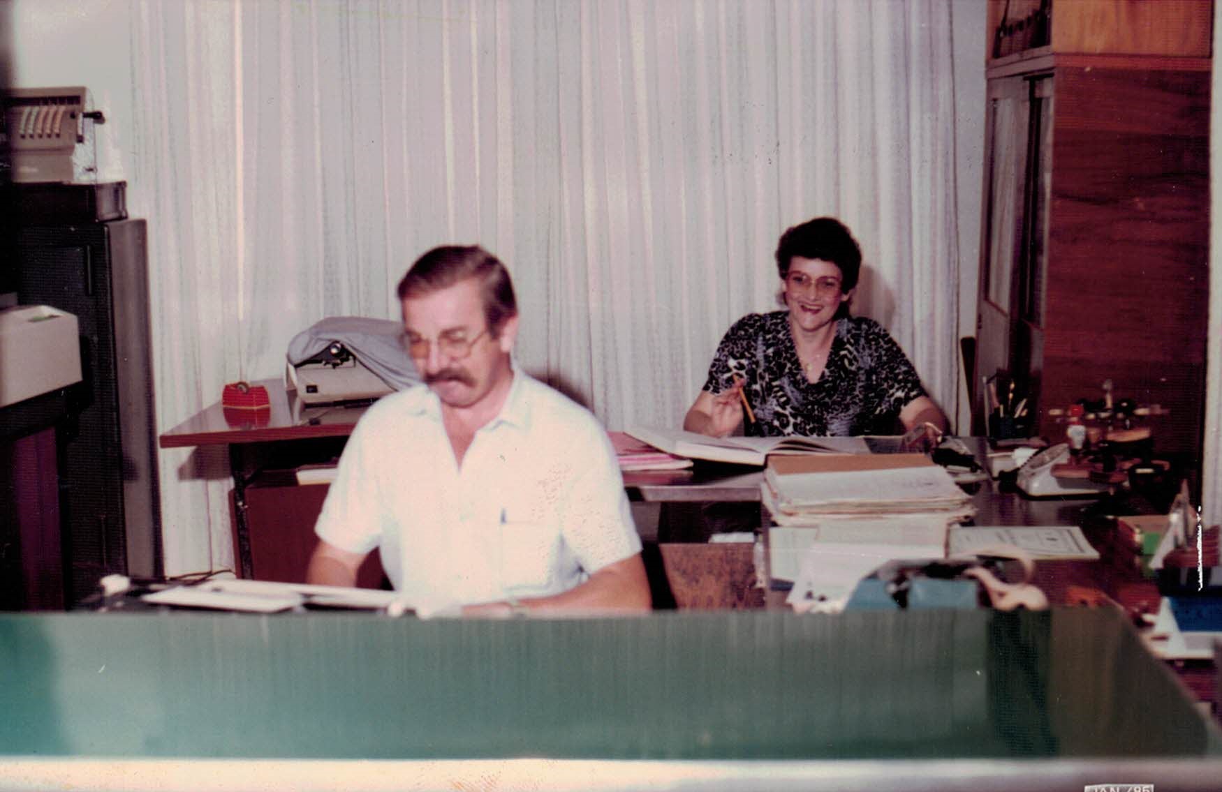 (Na foto - Cartório: Armindo Fischer junto de sua esposa e Tabeliã Substituta, Daltar Clarice Fischer)