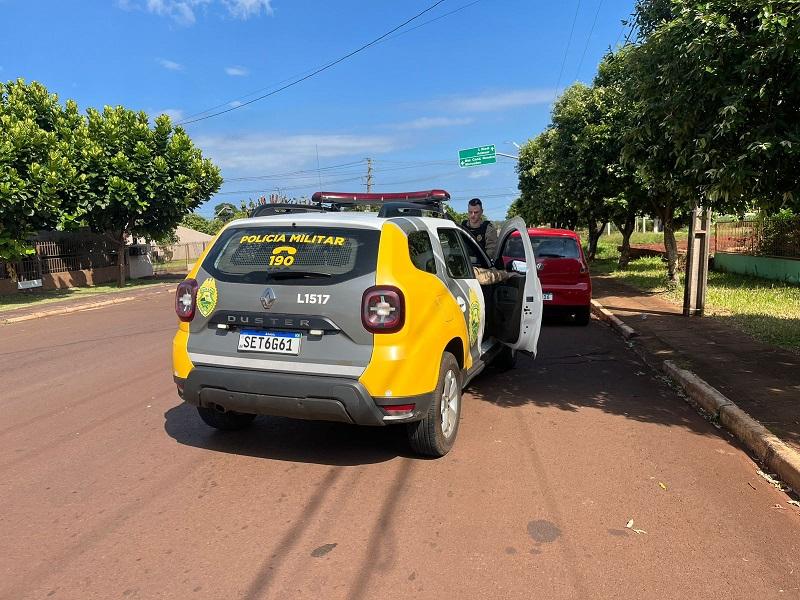 Na manhã deste sábado (23) um veículo Fox foi abordado por policiais militares de Nova Santa Rosa na Rua Jucelino Kubitscheck, proximidades da Avenida Santo Cristo.