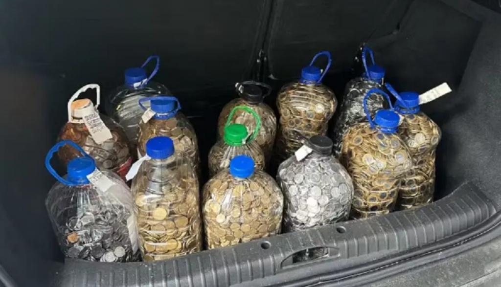 O comprador adquiriu um Honda City 2015, que custou R$65 mil. Para completar o pagamento feito via PIX, ele utilizou 13 galões de água cheios de moedas, variando entre 5 centavos e 1 real.