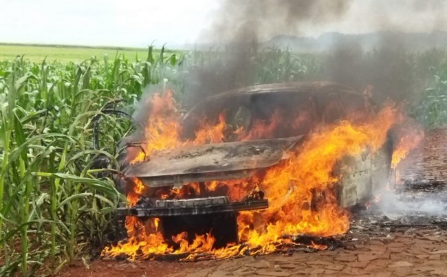 Nenhuma pessoa foi encontrada nas proximidades do veículo carbonizado.
