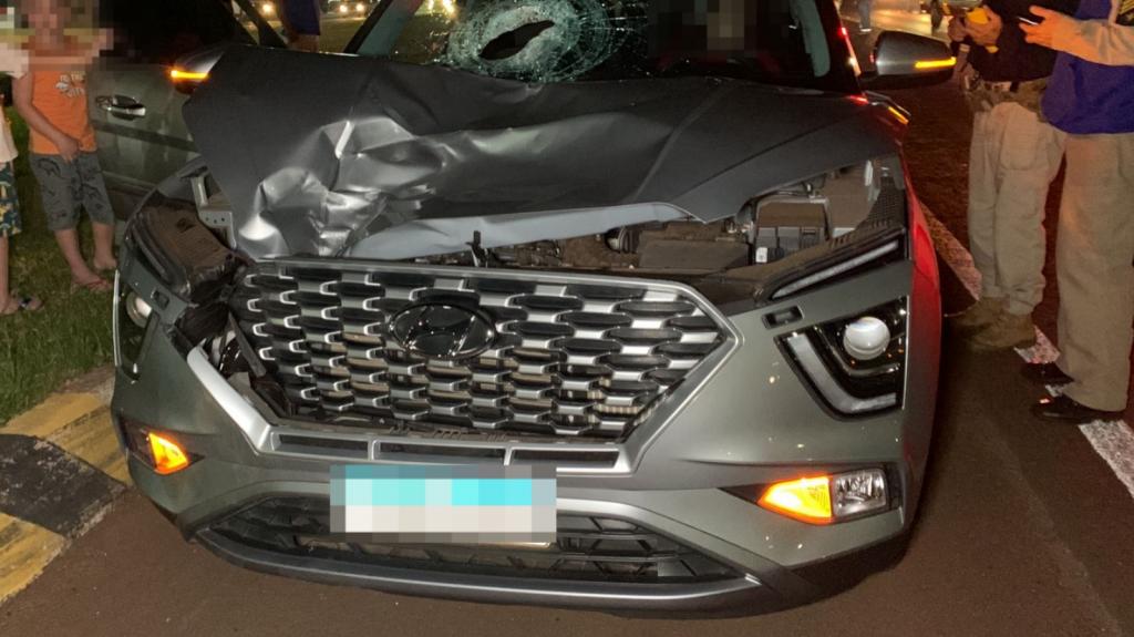 Ele foi atingido pelo carro, modelo Creta, que seguia pela rodovia no sentido crescente, ou seja, na direção de Foz do Iguaçu. O veículo que o atingiu ficou bastante danificado, com a lataria amassada e o vidro do para-brisa quebrado, evidenciando a força do impacto no acidente. O que foi apurado é que ele estava atravessando a BR 277 quando foi atropelado.