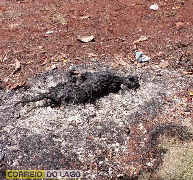 Ao chegar ao local, a polícia confirmou as informações da denúncia, constatando que um dos animais estava carbonizado.